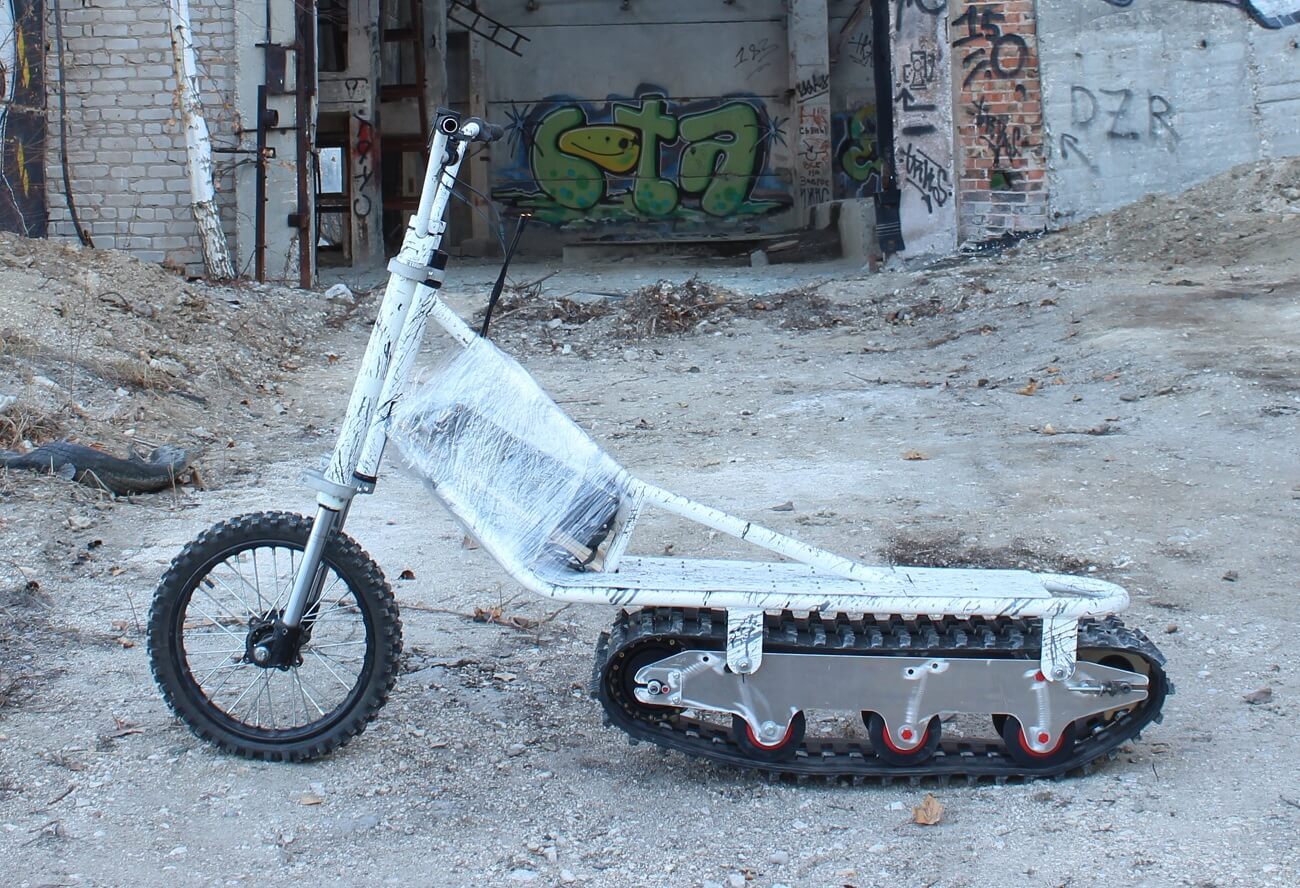 Как способ перемещения по городу давно завоевали электросамокаты, которые можно купить или сдать в аренду. Но про использование их за городом речи не идет из-за плохих дорог и неразвитой инфраструктуры. Как раз тут и начинается целое непаханое поле для вас, создателей гусеничных самокатов. Они обладают хорошей проходимостью благодаря гусеничным тракам и, к тому же, способны выдерживать более суровые условия нежели их городские коллеги.
