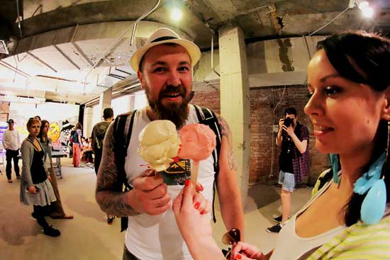 Производители мороженого приходят к нам на помощь. Производители лакомства не устают нас удивлять новыми вкусами и формами. Не так давно в Москве 3-4 июня прошли вечеринки, организаторами вечеринки стал рекламное агентство STOYN.В рамках этих вечеринок компания STOYN представила публике новый проект STOYN Ice Cream-необычное мороженое в виде знаменитостей.