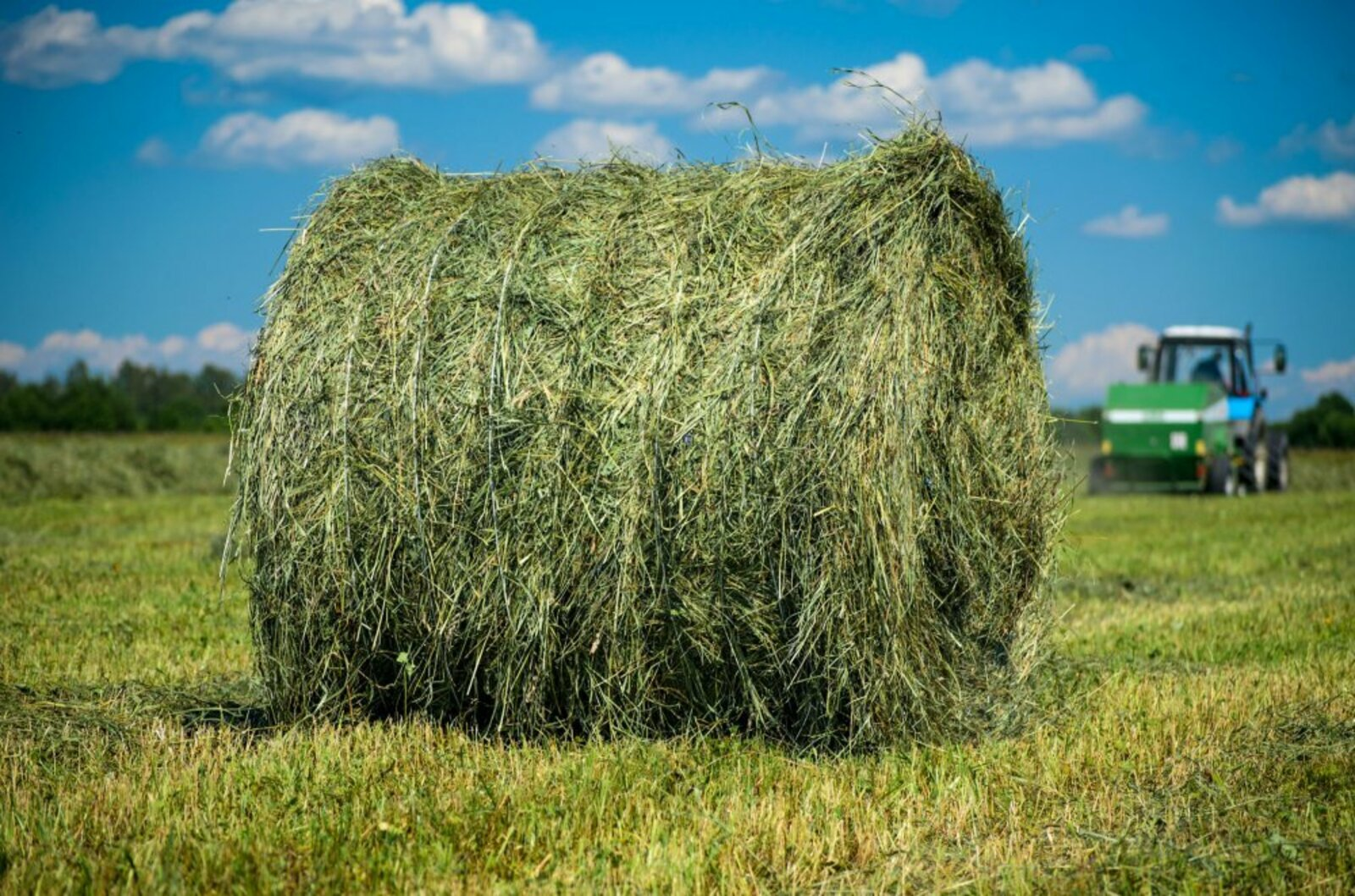 Когда сено хорошо просохло, оно попадает под пресс, в результате получаются рулоны. При сухой погоде их хранят прямо на земле, при влажной — перевозят в складские помещения. На данном этапе сенокос считается завершенным и готовый продукт отправляют на реализацию.