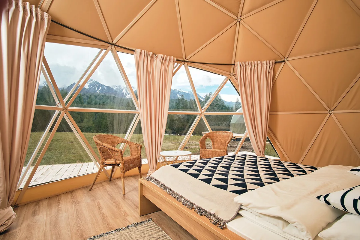Возвести глэмпинг можно довольно быстро, так как для их строительства часто применяются модульные конструкции. При этом за счет невысокой конкуренции и уникальности формата ценники на размещение в них довольно приличные по сравнению с обычными гостевыми домами.
