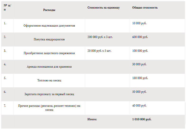 Бизнес план проката квадроциклов