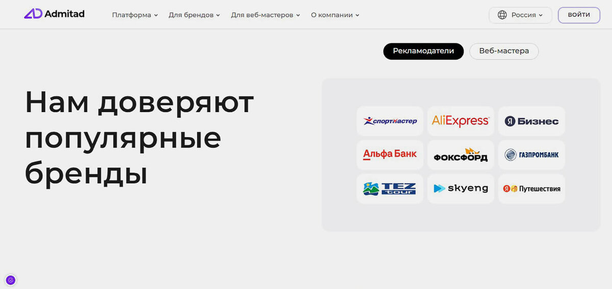 Искать партнёрские программы можно на сайтах компаний — например, информация о них есть на сайтах Skillbox, AliExpress, «Альфа-Банка». Также есть CPA-сети — площадки, на которых много предложений от разных рекламодателей. Самая крупная CPA-сеть в России — Admitad.