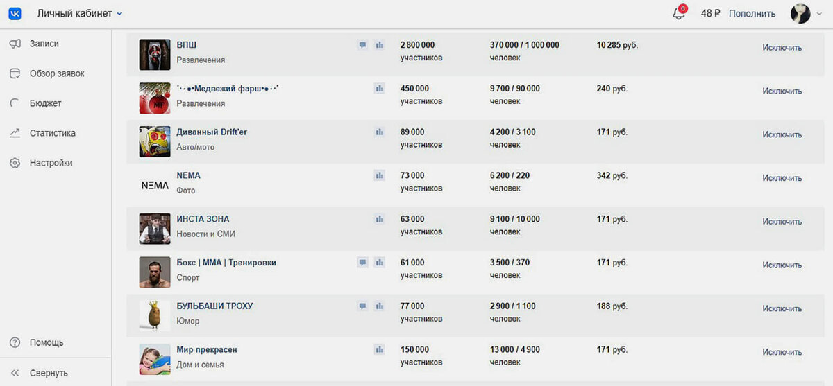 - Биржи рекламы — сторонние площадки. Владельцы групп выкладывают там информацию о группах и стоимости размещения, рекламодатели — ищут подходящие сообщества. Если ваша группа понравится рекламодателю, он напишет — и вы договоритесь об условиях. Бирж много — например, есть Perfluence, Sociate, Plibber и другие.