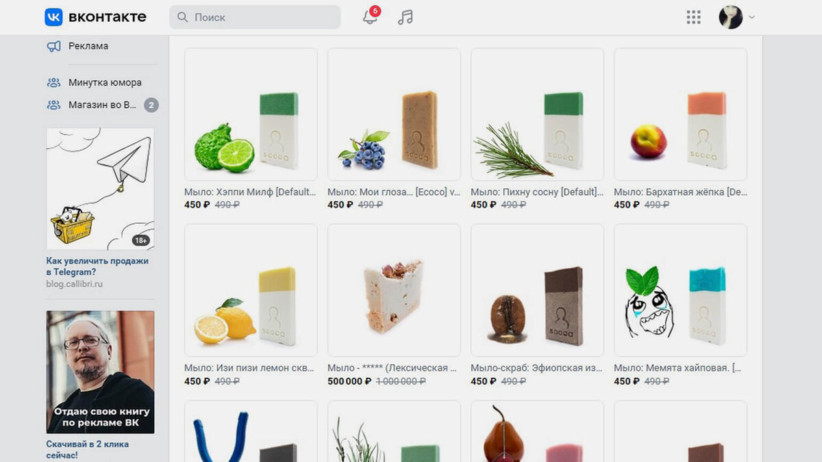 Во «ВКонтакте» можно создать интернет-магазин и продавать там товары. Некоторые продают товары собственного производства — например, мыло ручной работы, картины, кованые изделия. Некоторые перепродают товары — электронику, одежду, зоотовары и многое другое.