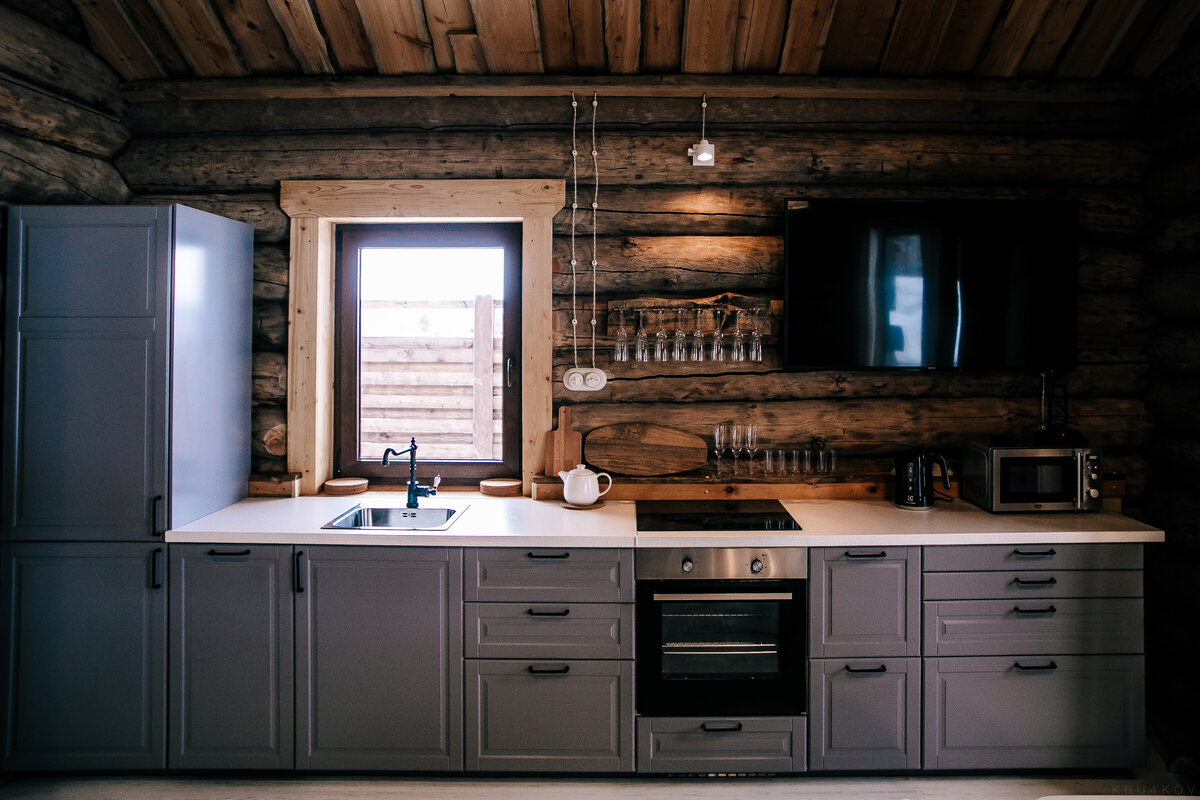 Естественно, было немного страшно «намудрить»— сделать дома слишком мрачными, слишком темными. Многие знакомые нас отговаривали оставлять дома в натуральном виде, мотивируя тем, что жить с бревнами внутри без отделки неприятно и быстро надоест. Но мы решили сделать все максимально натуральным и экологичным. Сейчас я могу часами рассматривать дерево внутри наших домов — каждое бревно уникальное, на каждом есть свой рисунок, сучок, трещина. И я сомневаюсь, что мне когда-нибудь может это надоесть.