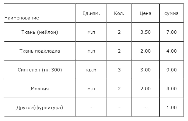 Кроме закупки оборудования и аренды помещения будут текущие затраты. В основном это ткани, фурнитура, утеплитель, нитки.