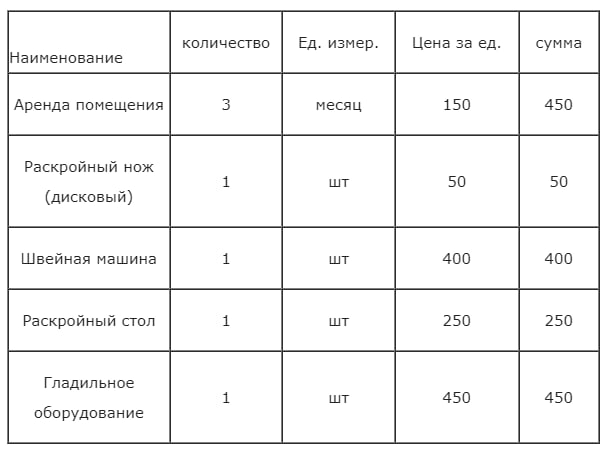 В любом случае вам понадобится на первом этапе один сотрудник с профессией швея-закройщица. Месячная зарплата в этой отрасли до 230 долларов. Добавим эту сумму к основным затратам на первые три месяца.