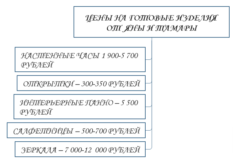 Основная целевая аудитория – мамочки в декрете, которые имеют много свободного времени и занимаются убранством интерьеров. Лучше всего продаются, по заверениям девушек, настенные часы, открытки и панно.